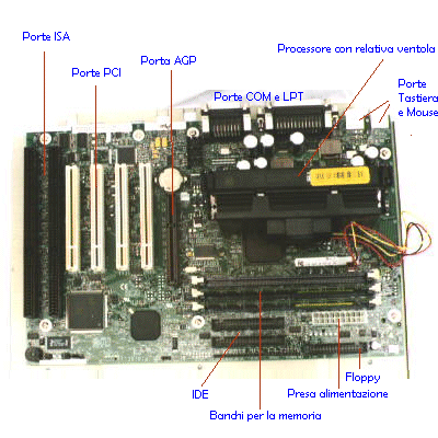 Porta AGP (Accelerated Graphic Port): per le schede grafiche dell'ultima generazione dotata di un canale preferenzialle di collegamento con la CPU grazie al quale i dati possono viaggiare al doppio della velocità delle normali periferiche PCI: